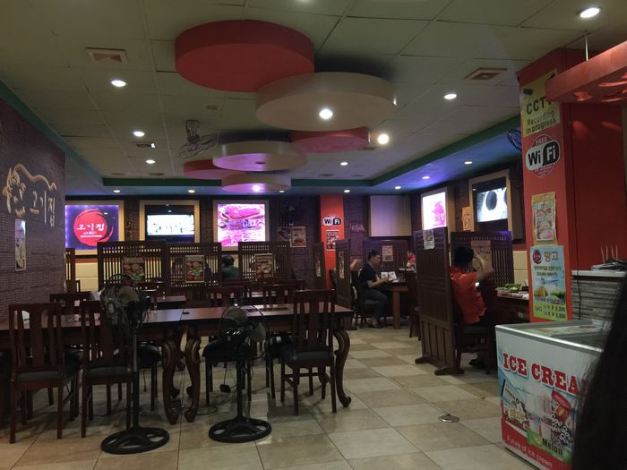 店内右側は韓国人客がグループで来ていたので、写真は撮影できませんでした。左側はテレビがあって客がまばら、写真右に見えるアイスクリーム冷凍庫からオススメはメロン味のアイスクリーム。