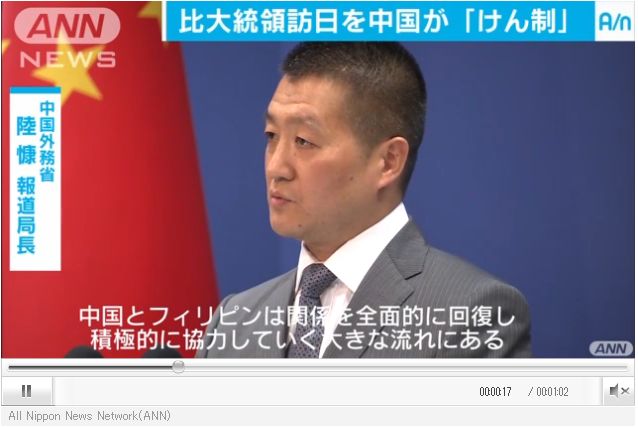 なんでもケチをつけてくる中国、さっそくフィリピンと日本の関係にケチをつけてきた。来日前にドゥテルテ大統領が中国を訪問いて2兆5000億円規模の経済支援を取り付けたばかり、南沙諸島問題をアメリカと日本がうるさくけん制するから、中国はフィリピンに経済支援してスプラトリー、スカボロに軍事基地を建設してスービック、クラークの米軍基地を攻撃射程距離にしたい考え。